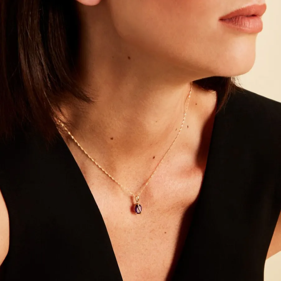 Pendentif Or Jaune 375/1000 Améthyste Violette Ovale 1cts Serti 4 Griffes