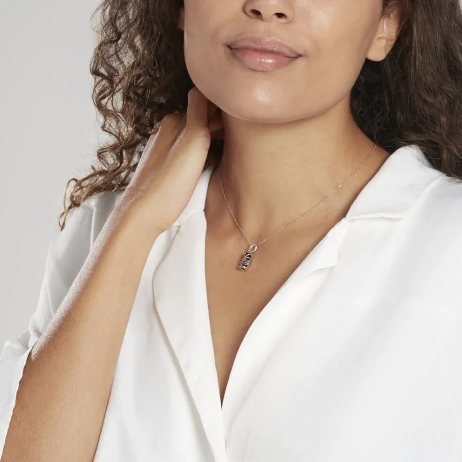 Pendentif Argent Blanc 925/1000 Onyx Noir Pm