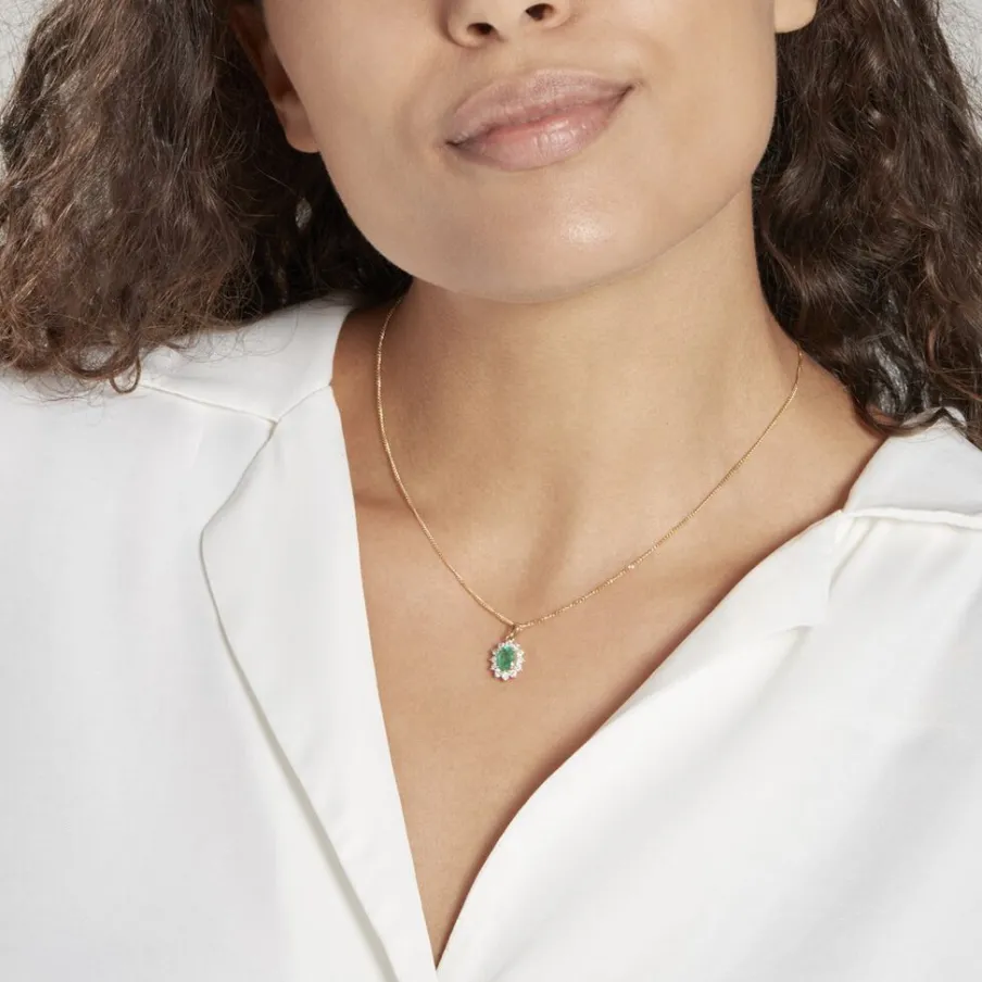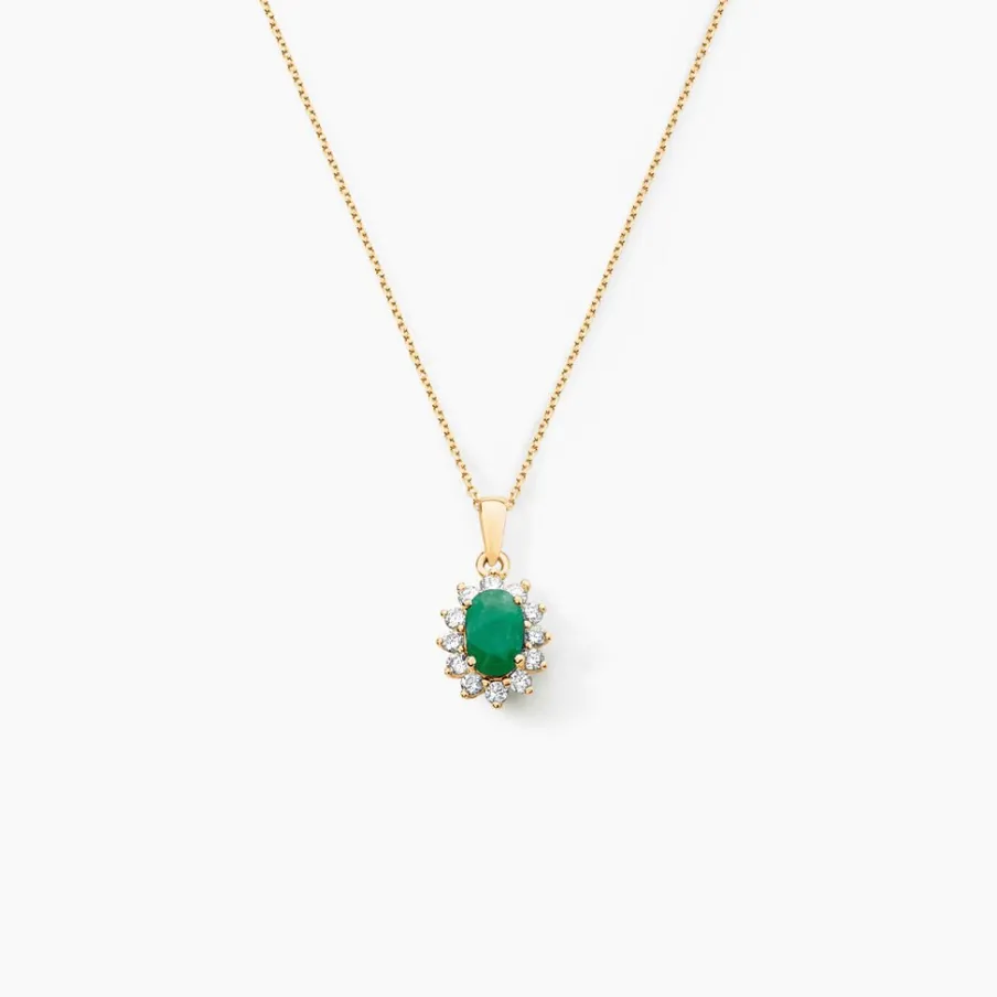 Pendentif Or Jaune 375/1000 Emeraude Simple Entourage Diamants Mm