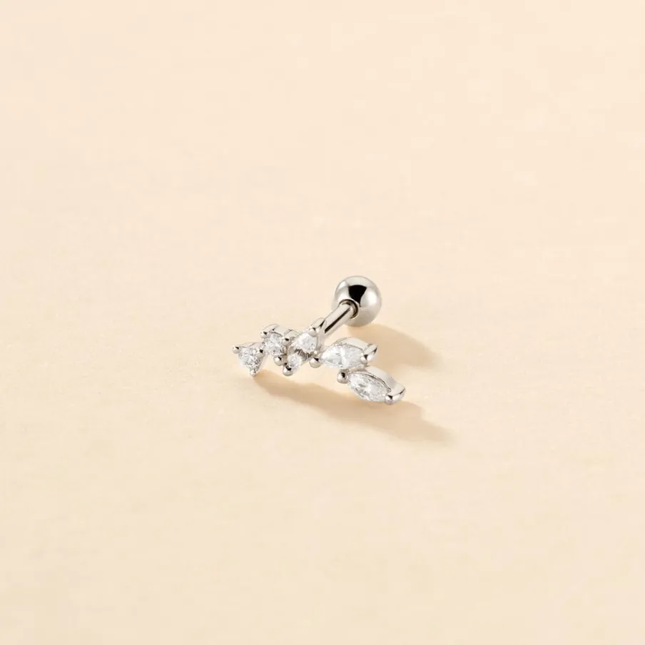 Piercing D’oreille Gauche Unitaire Argent Blanc 925/1000 Feuille Multipierres Oxydes De Zirconium