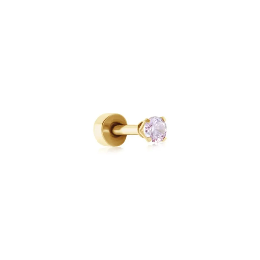 Piercing D’oreille Unitaire Acier Inoxydable Jaune Oxyde De Zirconium Rose