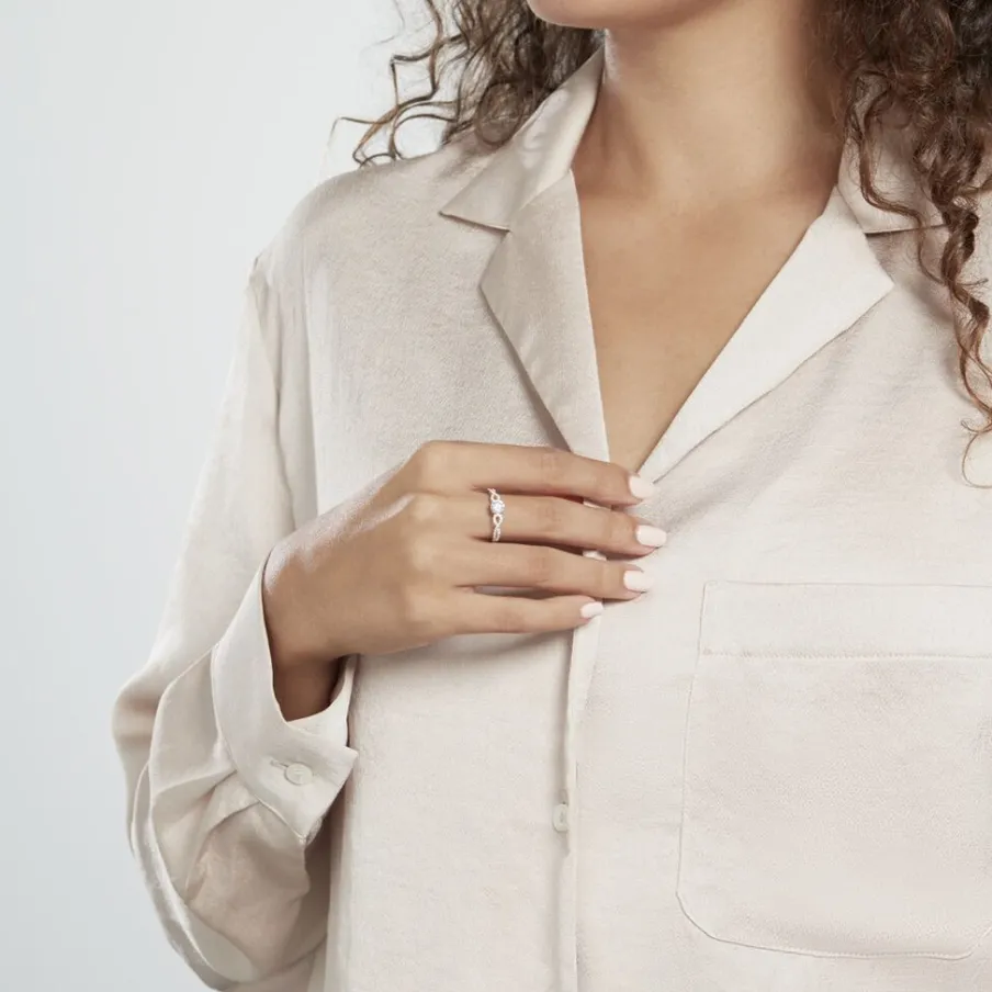 Solitaire Or Blanc 375/1000 Oxyde De Zirconium Accompagne Corps De Bague Entrelace