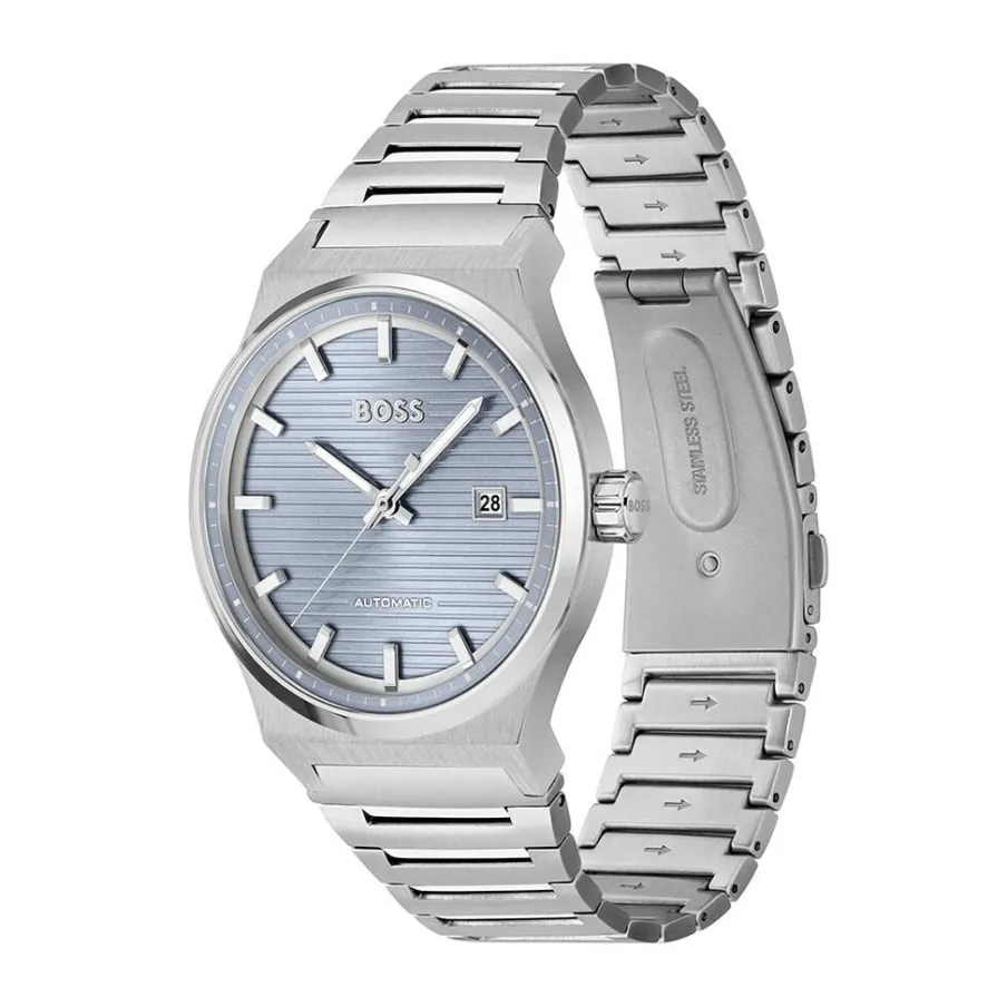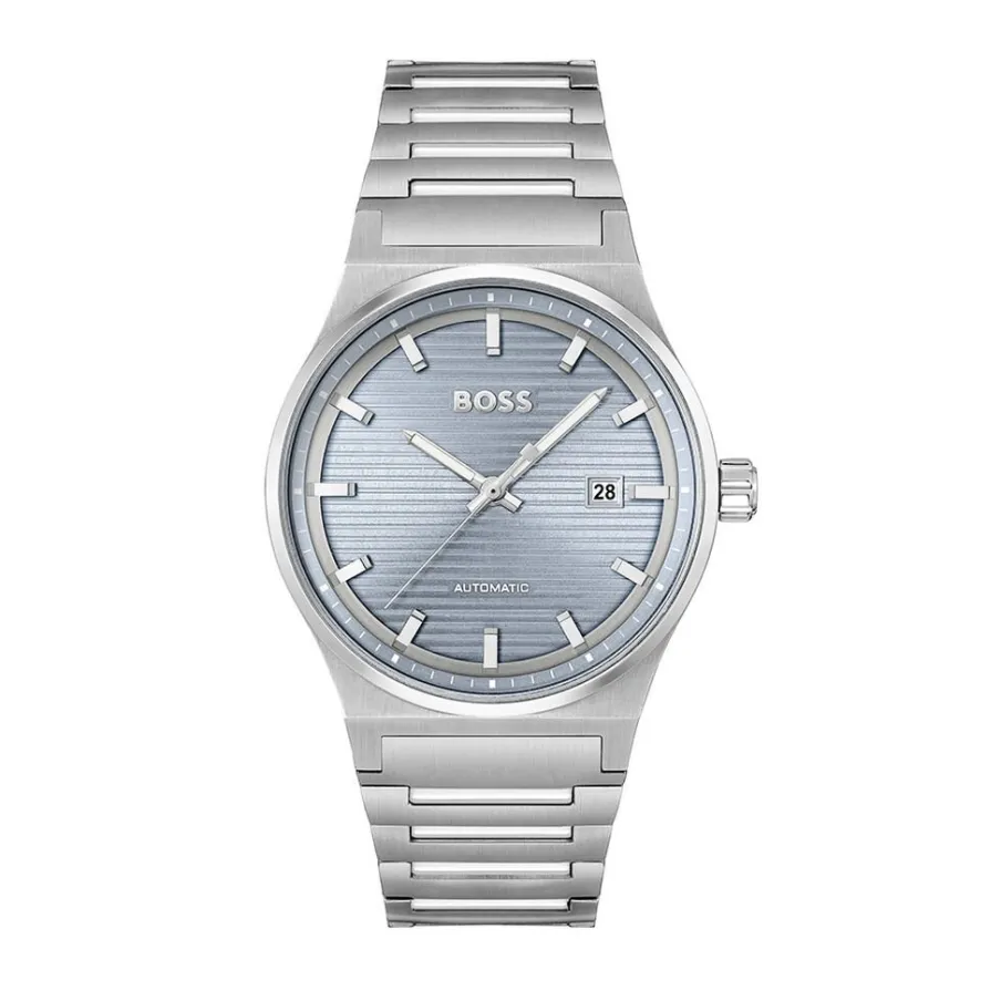 Montre Boss Candor Acier Argente Rond Automatique 41mm Fond Bleu Bracelet Acier Argente 1514118