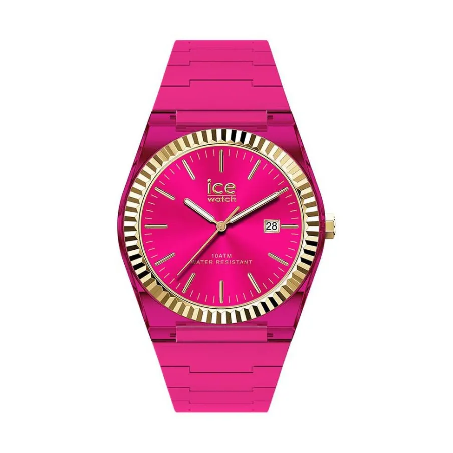 Montre Ice Watch Power Plastique Rose Quartz Ronde 36Mm Fond Rose Lunette Dore Bracelet Silicone Rose 024758