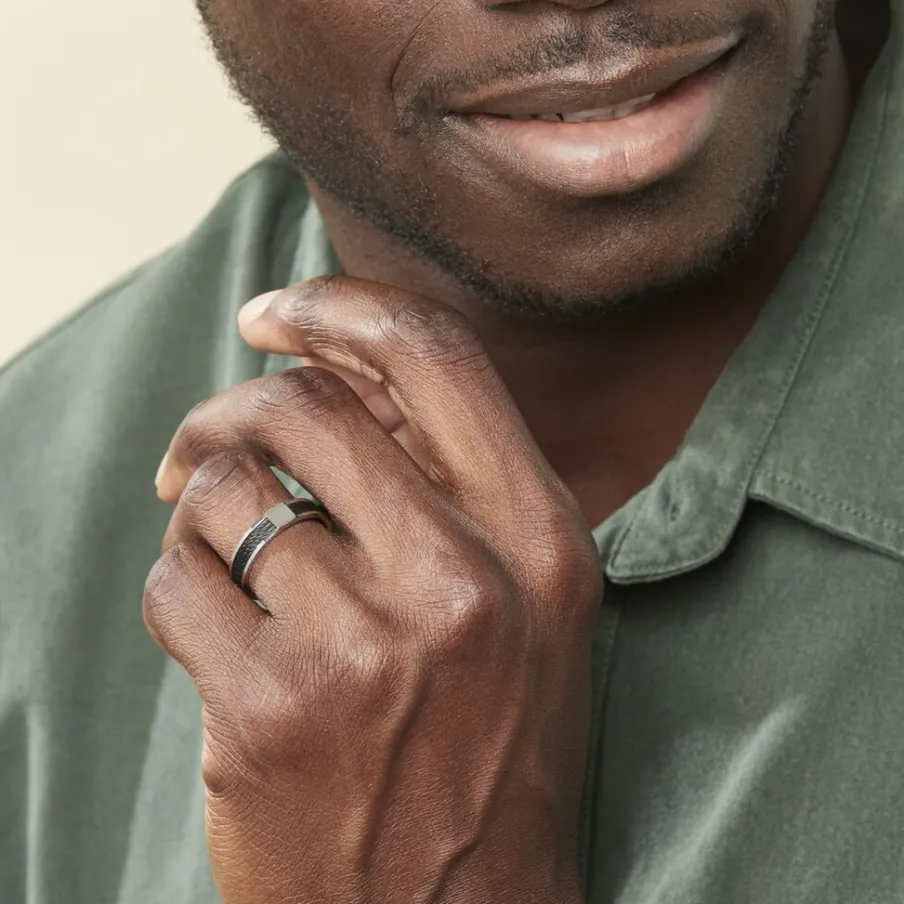 Bague Homme Acier Et Cables Noirs