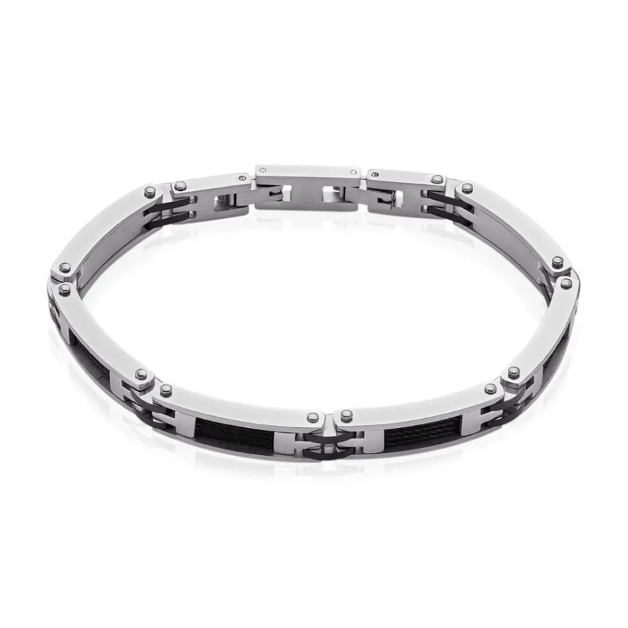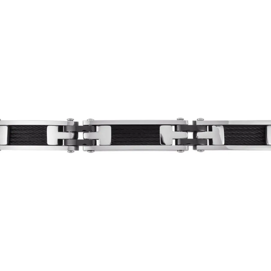 Bracelet Jourdan Homme Acier Gris Et Noir Cable Noir 21.5cm Jh110050b