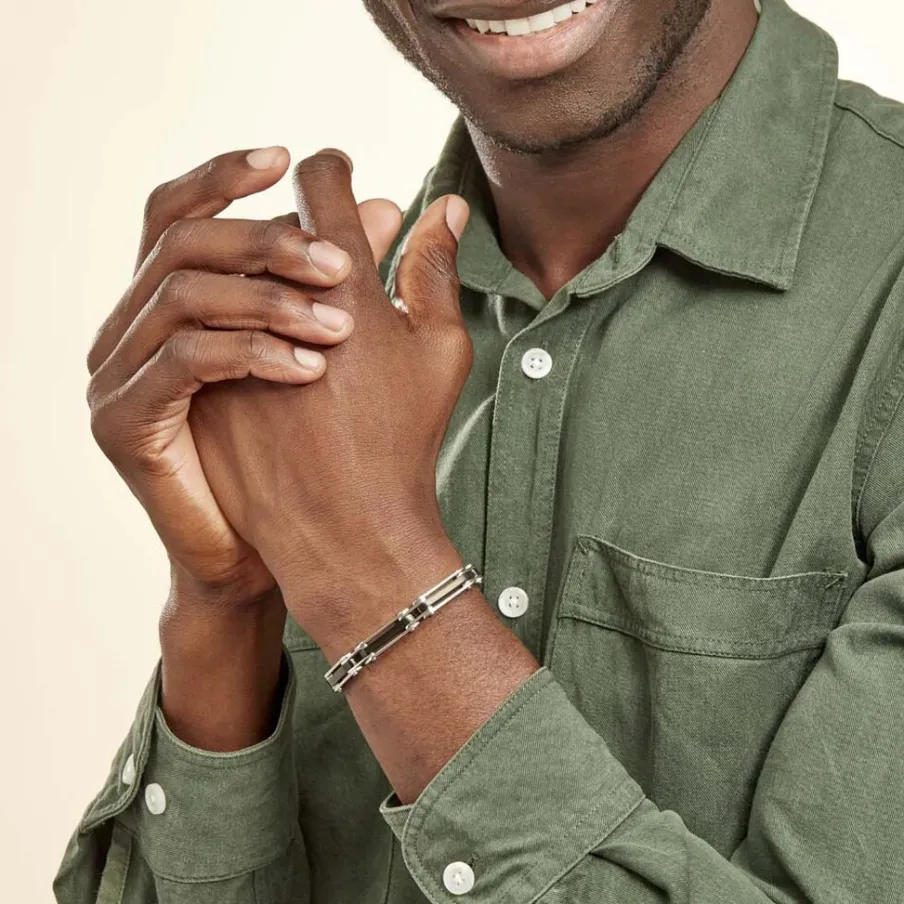 Bracelet Acier Bicolore Noir Et Blanc Forme Rectangle 20-21cm Jh110011b