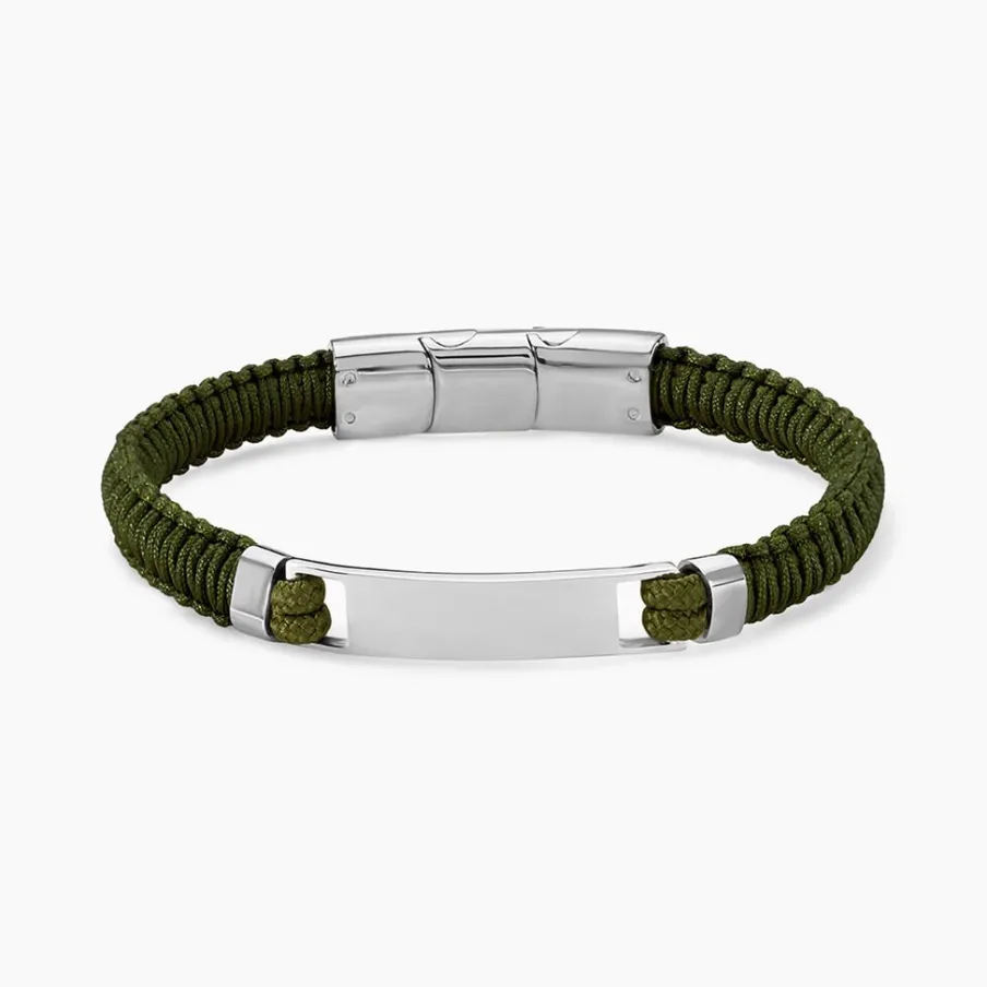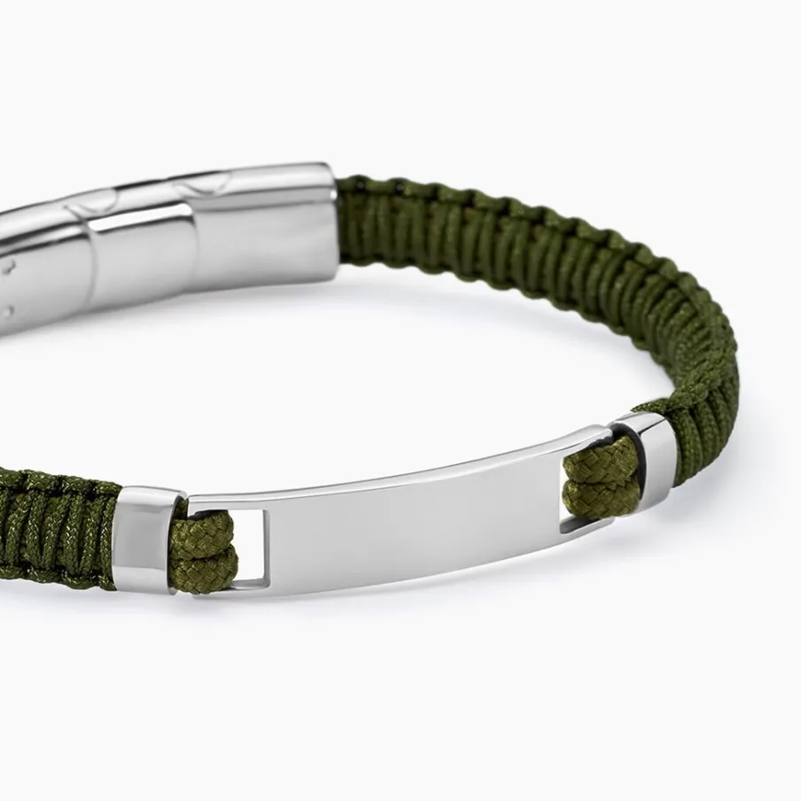 Bracelet Jourdan Dikeledi Acier Inoxydable Argente Cordon Nautique Tresse Vert Plaque Identite 20cm+1cm Jh250108b