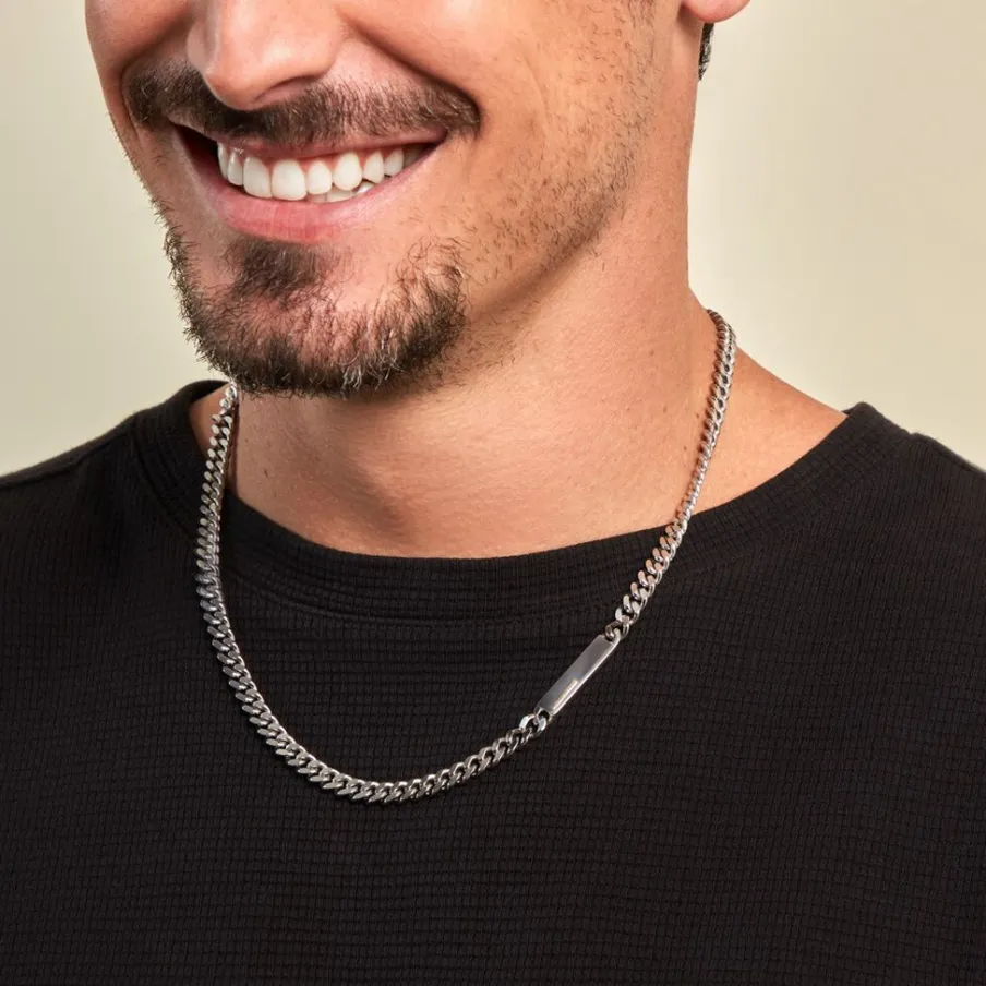 Collier Jourdan Olympe Acier Blanc Detail Or Jaune Maille Gourmette 55cm Jh150119n