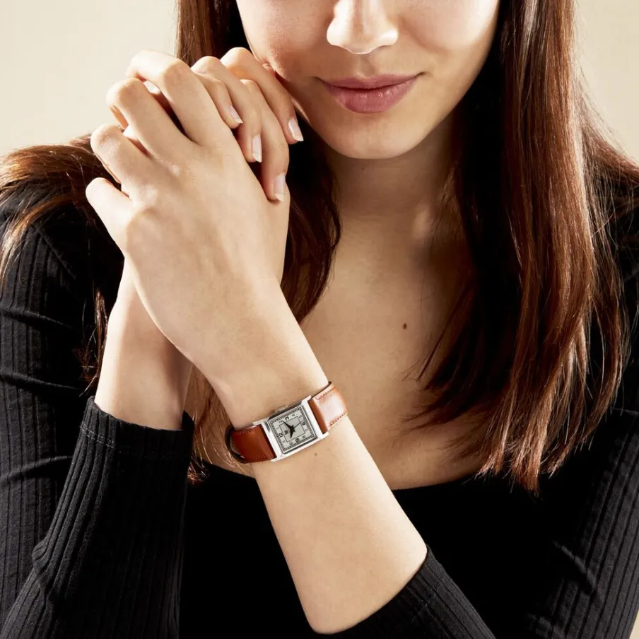 Montre Lip Churchill C18 Acier Argenté Carré Quartz 21mm Fond Argenté Bracelet Cuir Marron 671620