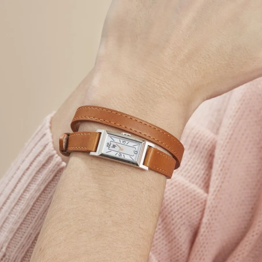 Montre Lip Churchill T13 Acier Argenté Rectangulaire Quartz 13×29 Mm Fond Weiss Bracelet Cuir Marron 671207