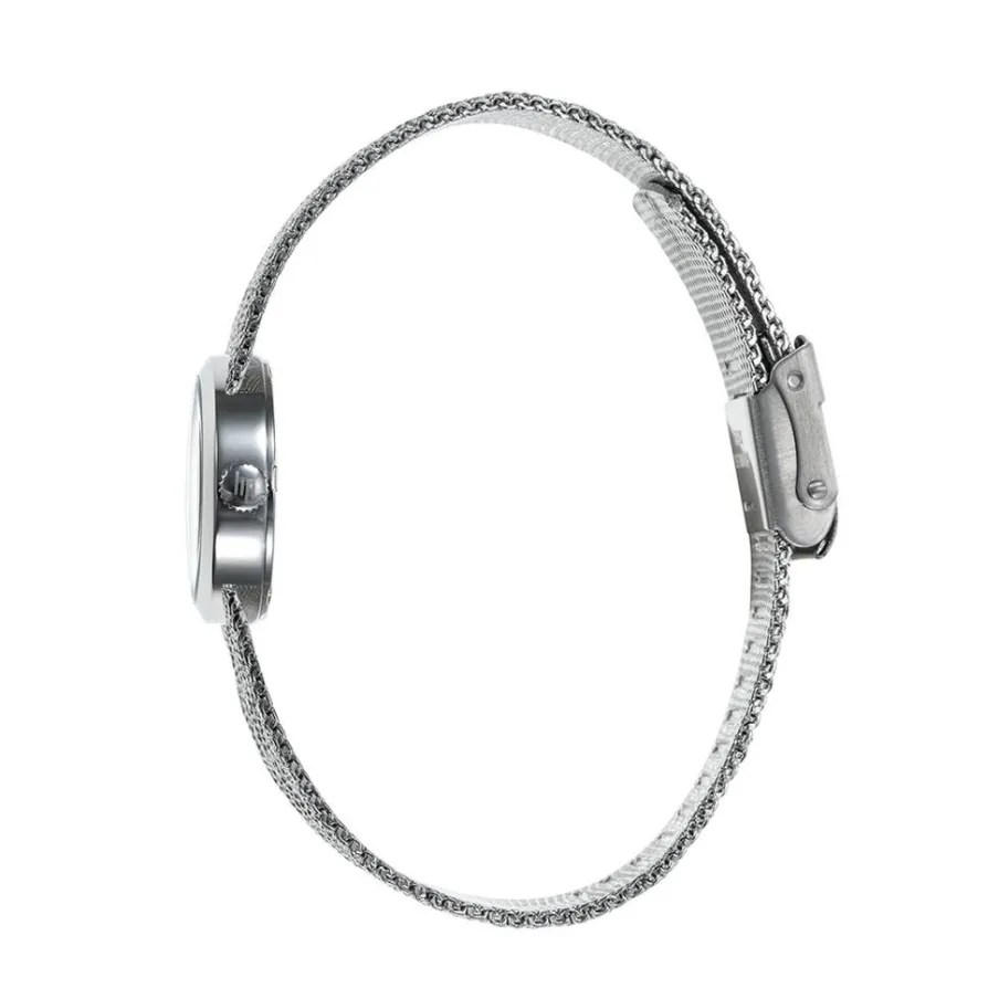 Montre Lip Henriette Diamant Acier Argenté Ronde Quartz 22mm Fond Nacre Noire 4 Diamants Bracelet Acier Argenté Polonais 671617