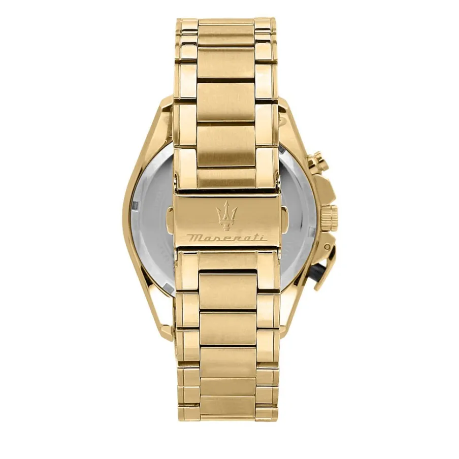Montre Maserati Traguardo Pvd Doré Ronde Quartz Chronographe 45mm Fond Noir Bracelet Métal Doré R8873612041