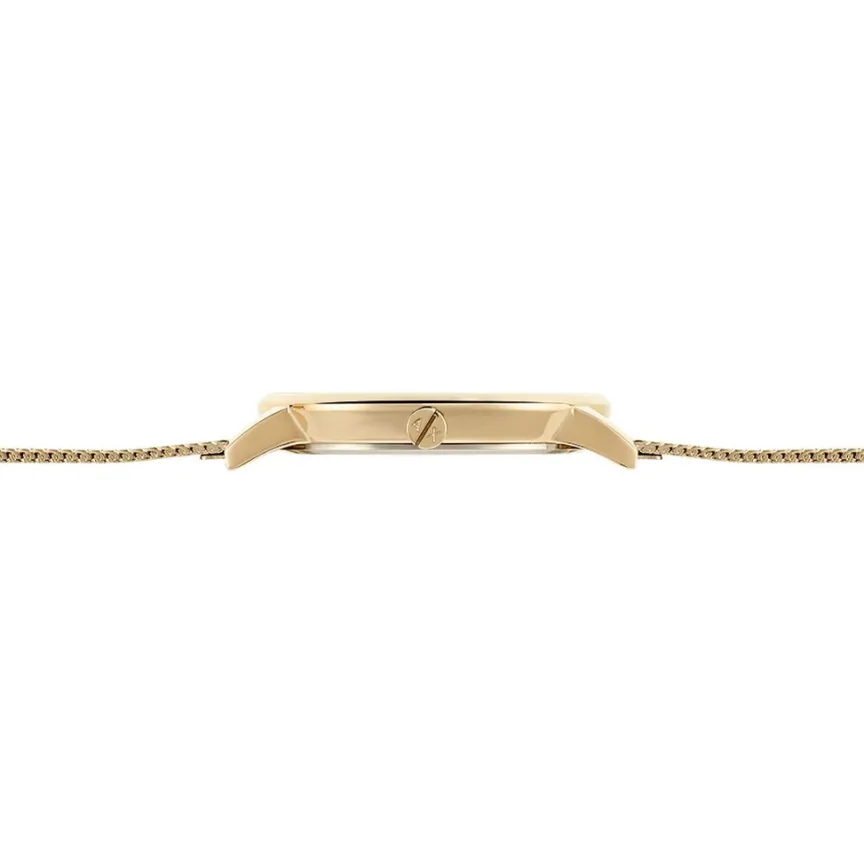 Montre Acier Dore Ronde 36mm Fond Dore Bracelet Acier Dore Poli