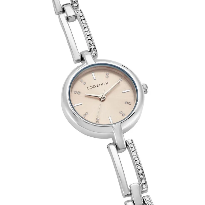 Montre Codhor Andrea Alliage Argenté Ronde Quartz 26mm Fond Rose Bracelet Alliage Argenté Et Strass Wba0110-004