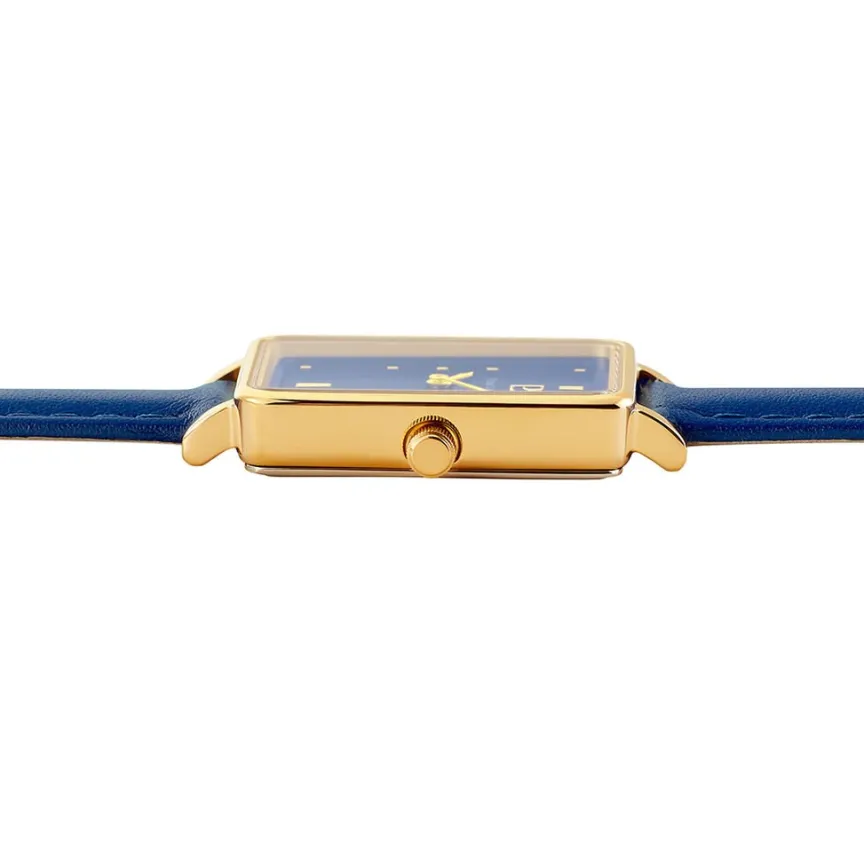 Montre Pierre Lannier Ariane Acier Doré Rectangulaire Quartz 28.4x21mm Fond Bleu Bracelet Cuir Bleu 050k566