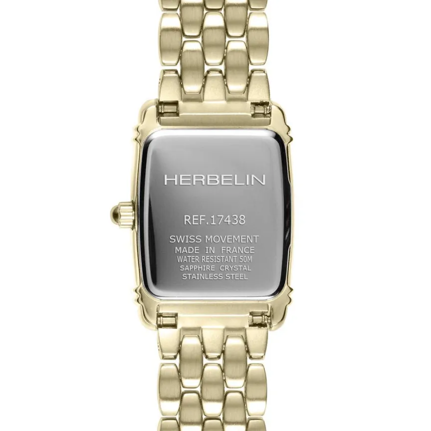 Montre Herbelin Art Deco Acier Inoxydable Doré Quartz Rectangulaire 17,8X19,4Mm Fond Argenté Bracelet Acier Inoxydable Doré 17438Bp1N22