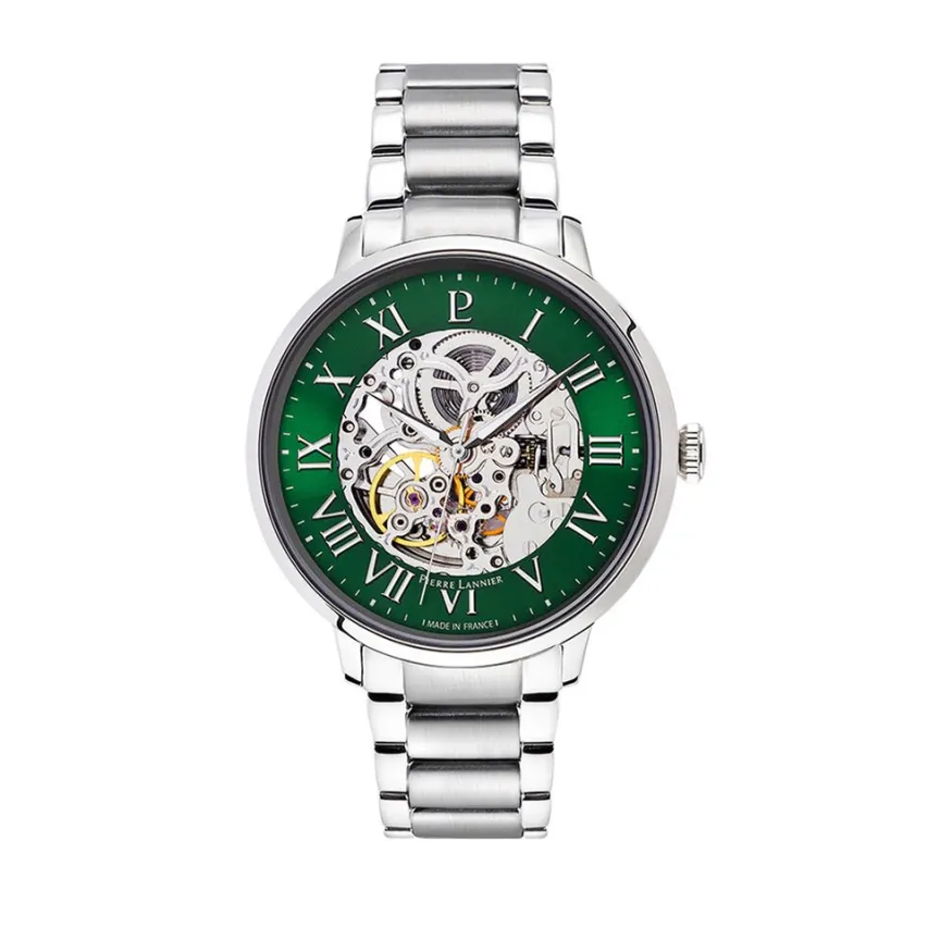 Montre Pierre Lannier Automatique Acier Argente Ronde Automatique 42mm Fond Vert Bracelet Acier Inoxydable Argente 317b171