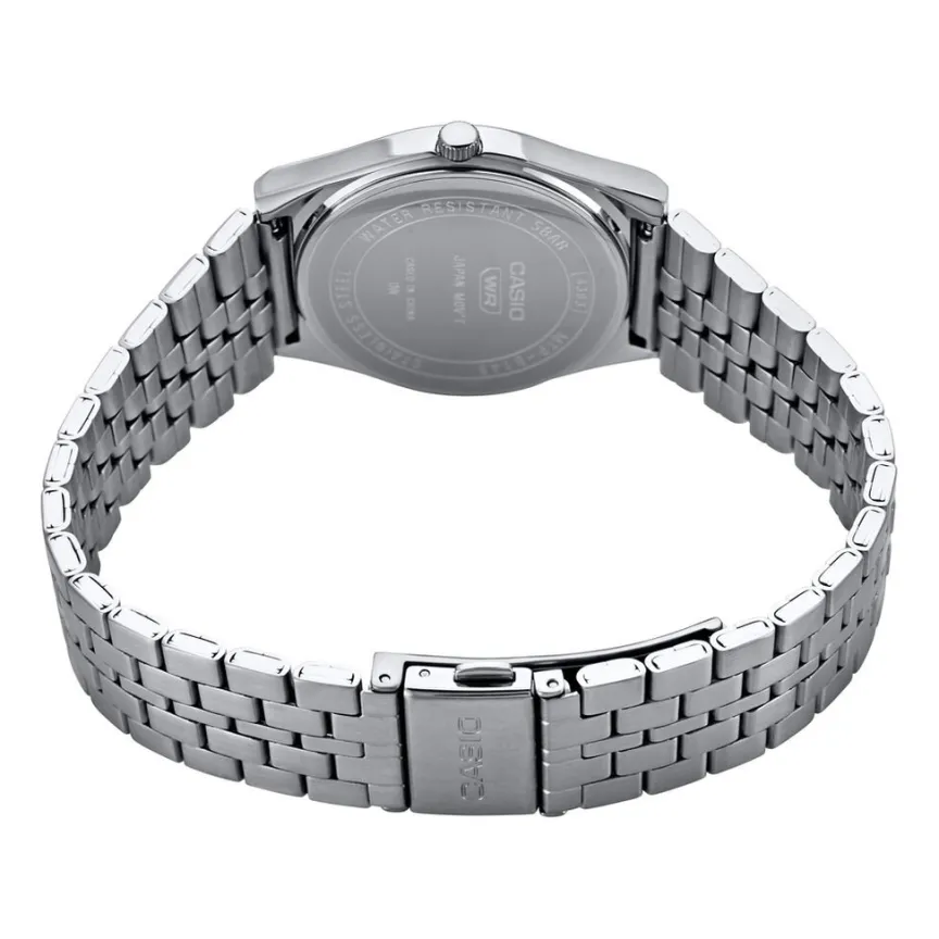 Montre Casio Collection Acier Argente Ronde Quartz 35mm Lunette Acier Argente Fond Azur Bracelet Acier Argente Mtp-b145d-2a1vef