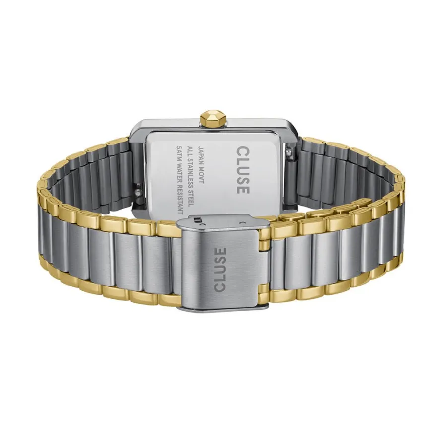 Montre Cluse Belissena Acier Bicolore Rectangulaire Quartz 32x21mm Fond Blanc Bracelet Acier Inoxydable Doré Blanc Cw15003