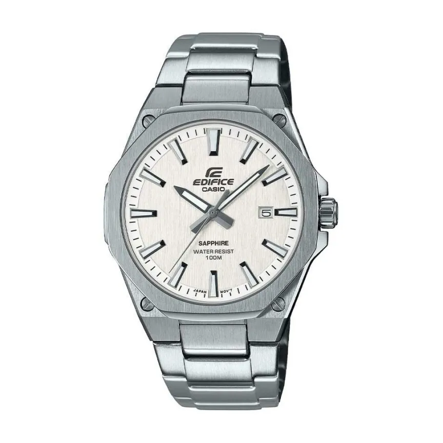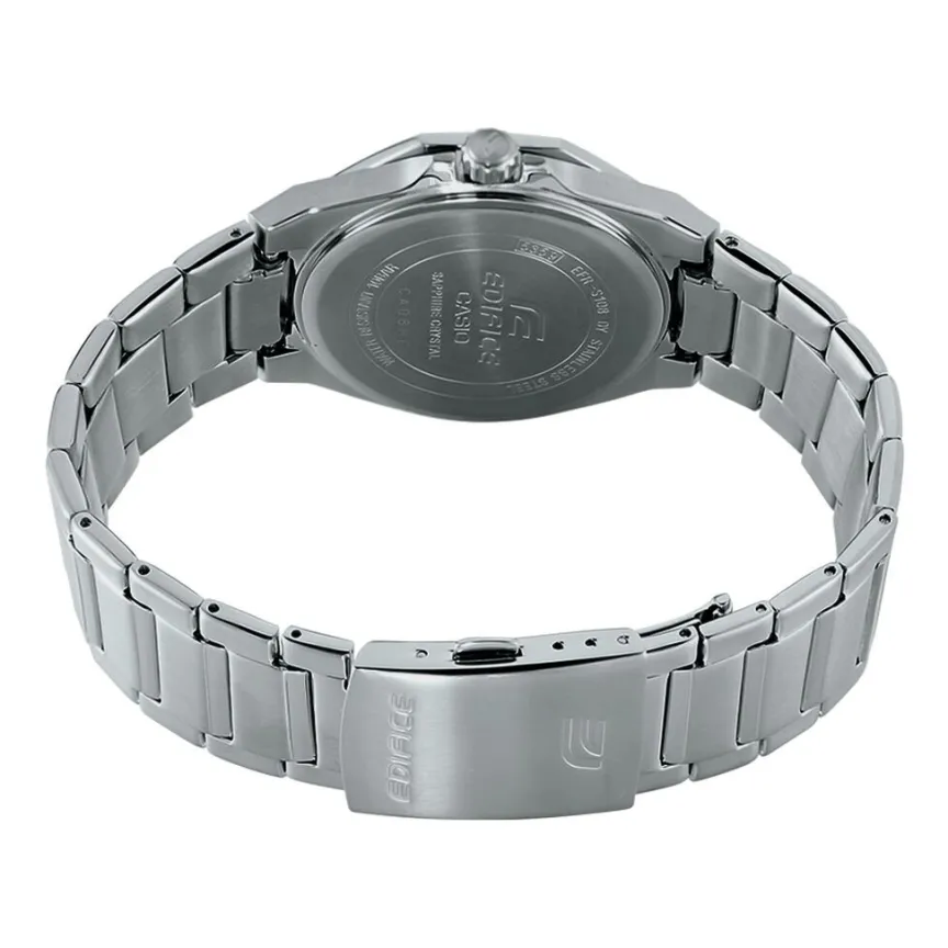 Montre Casio Edifice Acier Gris Ronde Quartz 44mm Fond Blanc Bracelet Acier Gris A100we-1aef