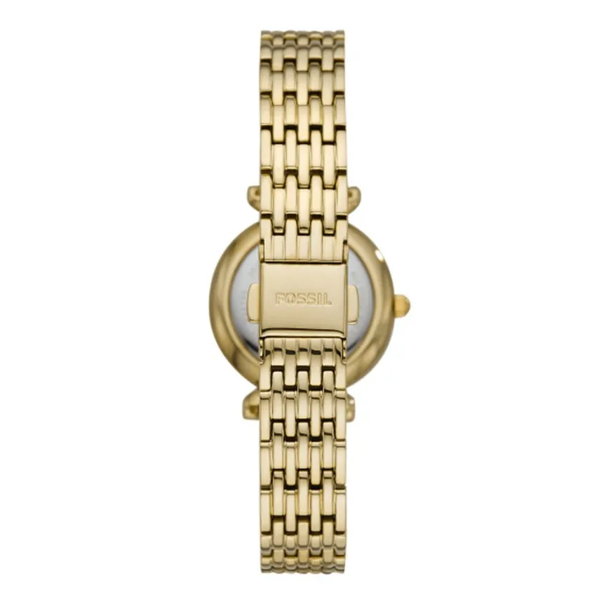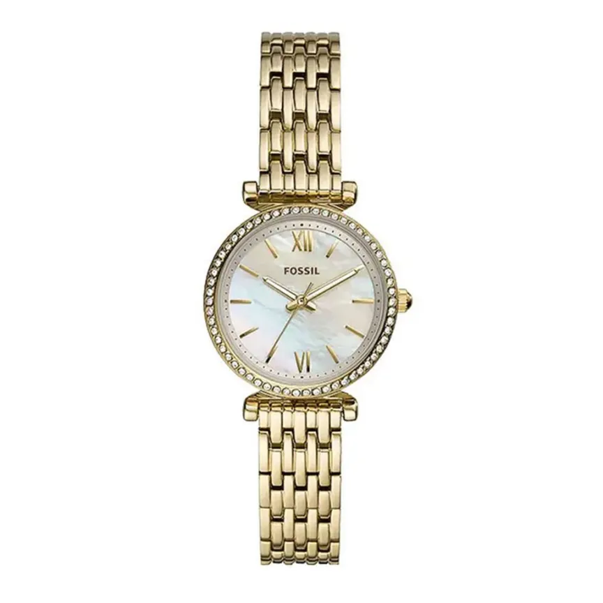 Montre Fossil Carlie Mini Acier Dore Ronde Quartz 28mm Fond Nacre Bracelet Acier Dore Es4735
