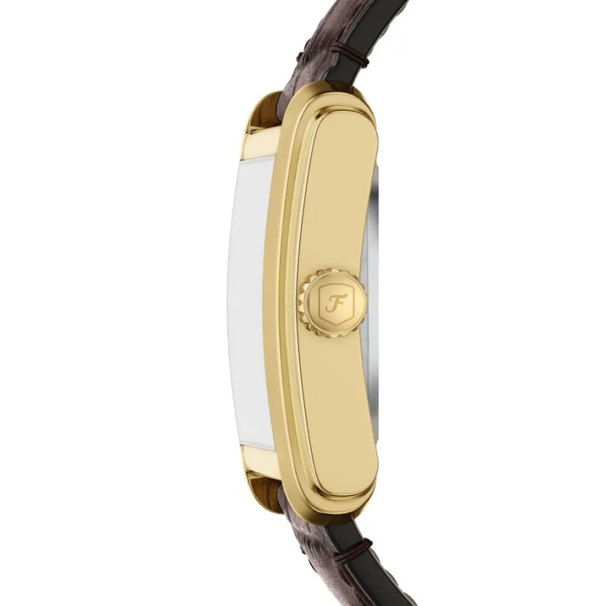 Montre Fossil Carraway Automatic Acier Inoxydable Doré Automatique Rectangulaire 30Mm Fond Vert C艙ur Ouvert Bracelet Cuir De Vache Marron Me3271