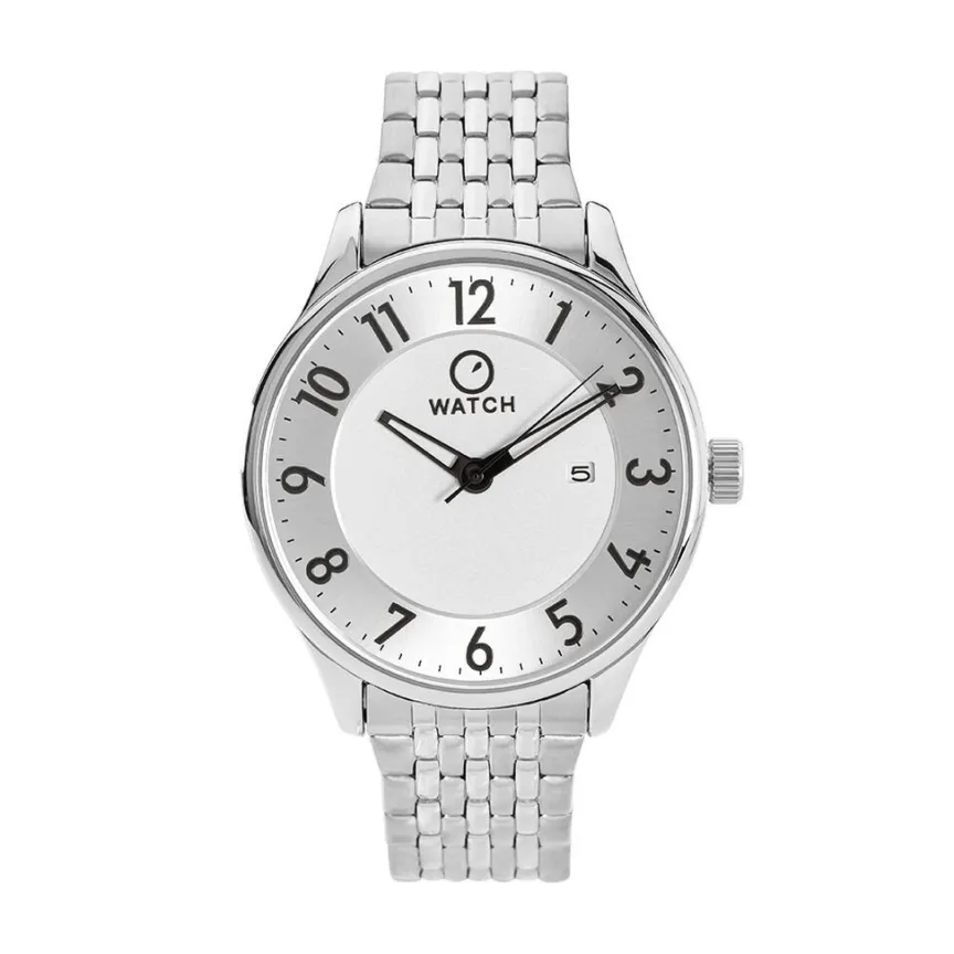 Montre O Watch Classic Alliage Argenté Ronde Quartz 42mm Fond Argenté Bracelet Acier Argenté Ow.1786ja-02m