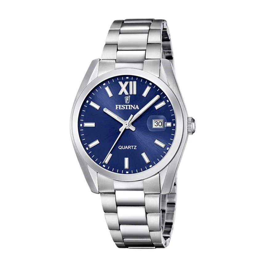 Montre Festina Classics Acier Argente Ronde Quartz 40mm Fond Bleu Bracelet Acier Argente F20707/7