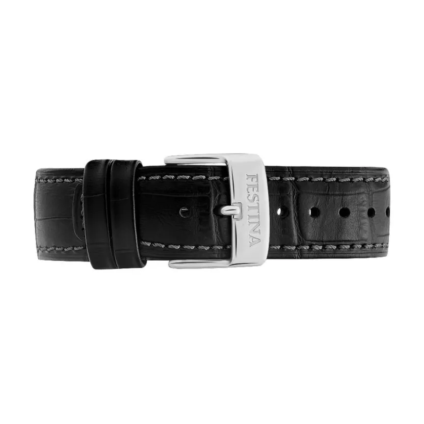 Montre Festina Classics Acier Blanc Ronde Quartz 39mm Fond Noir Bracelet Cuir Noir F167455
