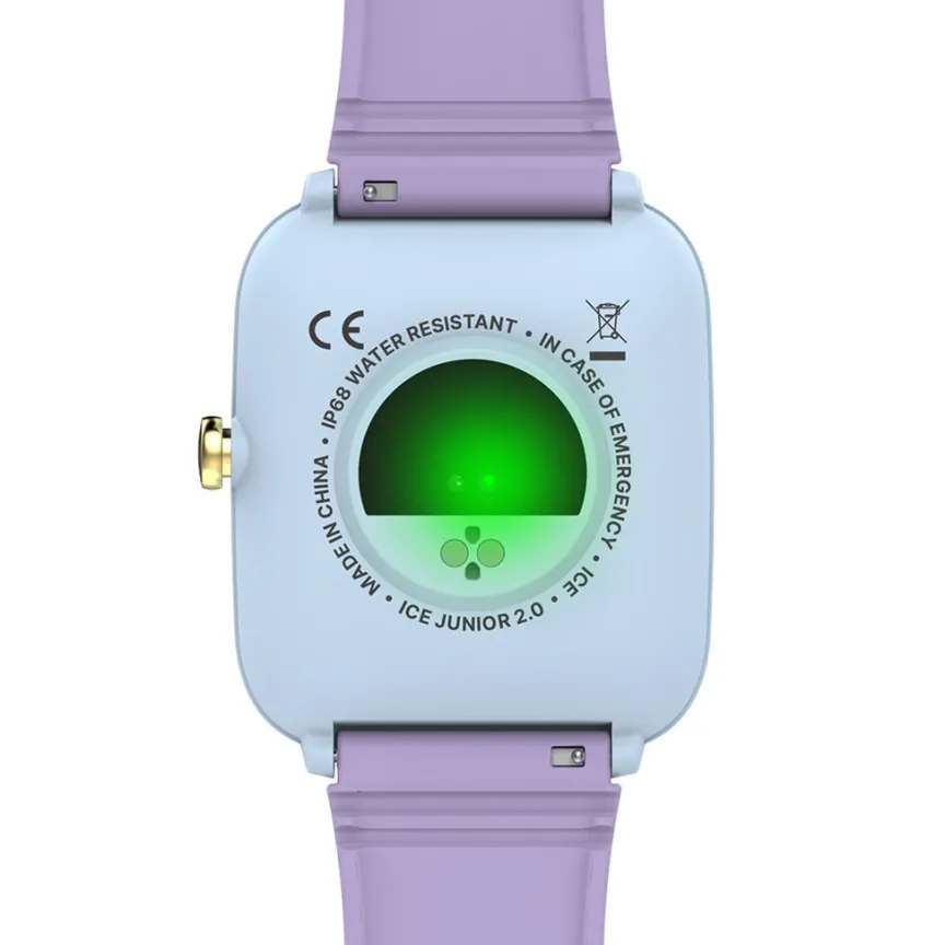 Montre Ice Watch Smart Junior 2.0 Plastique Bleu Sky Rectangulaire 35.7mm Connectée Fond Noir Bracelet Silicone Violet 022800