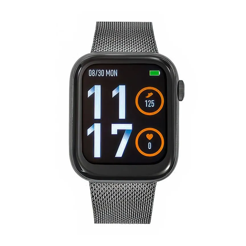Montre Tekday Alliage Gris Rectangulaire Connectee 38mm Fond Noir Bracelet Acier Gris Milanais 656525