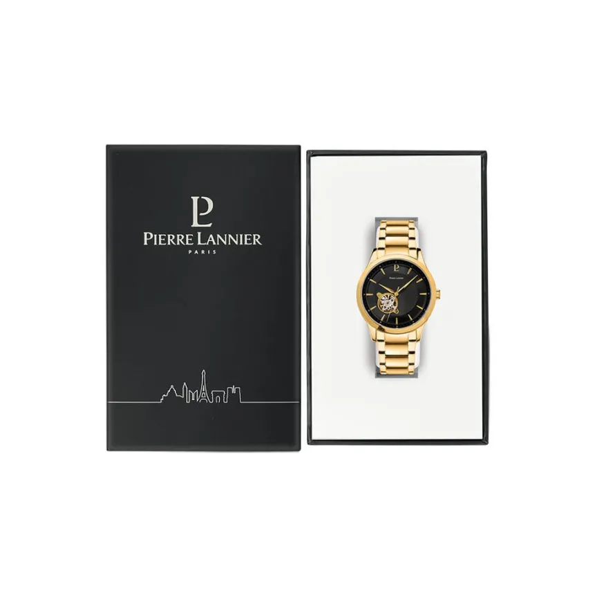 Montre Pierre Lannier Fleuret Acier Doré Ronde Automatique 42.5mm Fond Noir Bracelet Acier Doré 337b032