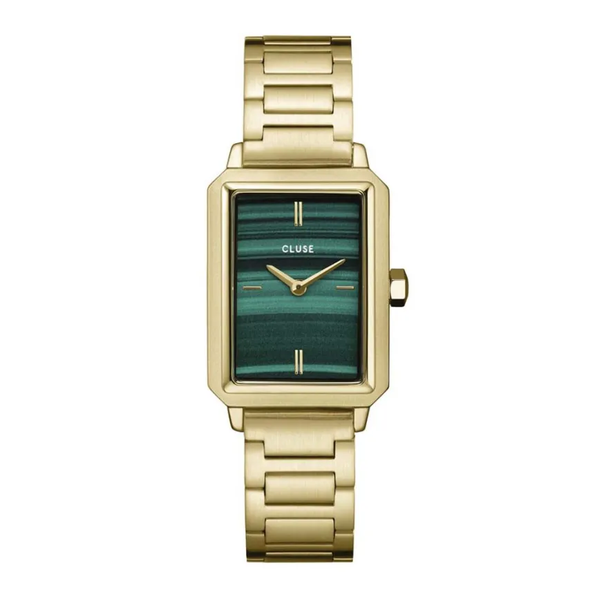 Montre Cluse Fluette Acier Doré Rectangulaire Quartz 30.6mm Fond Vert Bracelet Acier Doré Cw11502