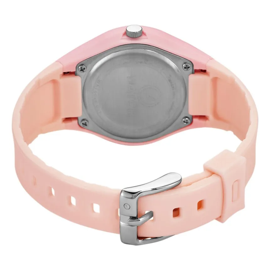 Montre O Watch Fluffy Plastique Rose Ronde Quartz 36mm Fond Rose Bracelet Silicone Rose Waf0098-028