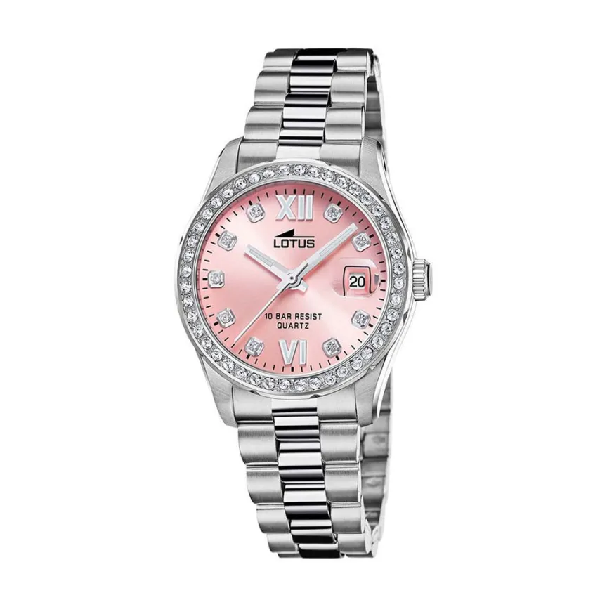Montre Lotus Freedom Collection Acier Argente Ronde Quartz 32.5mm Lunette Strass Fond Rose Bracelet Acier Argente 18933/2