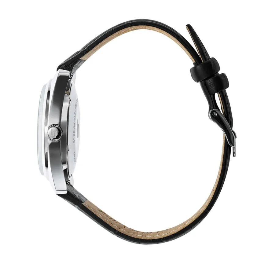 Montre Lip Gdg Acier Argenté Quartz Ronde 35mm Fond Argenté Bracelet Cuir De Vache Noir 671877