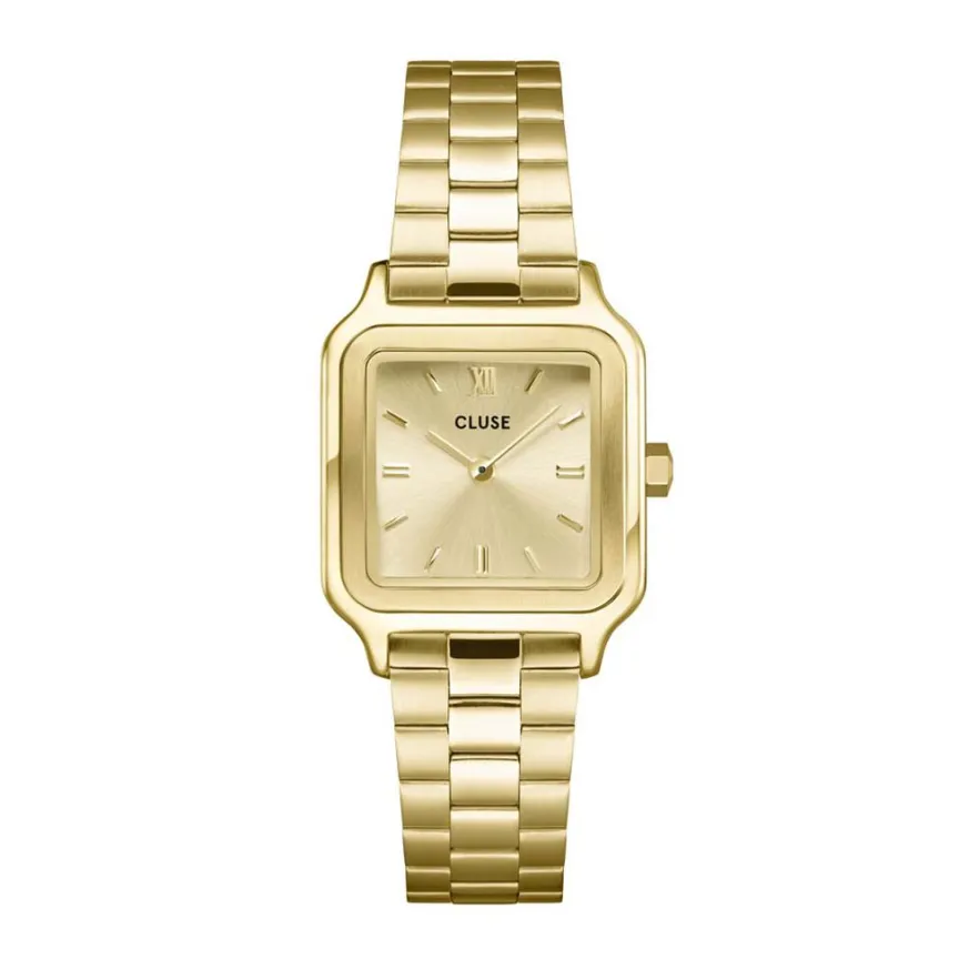 Montre Cluse Gracieuse Petite Acier Doré Carré Quartz 24mm Fond Champagne Bracelet Acier Doré Cw11802