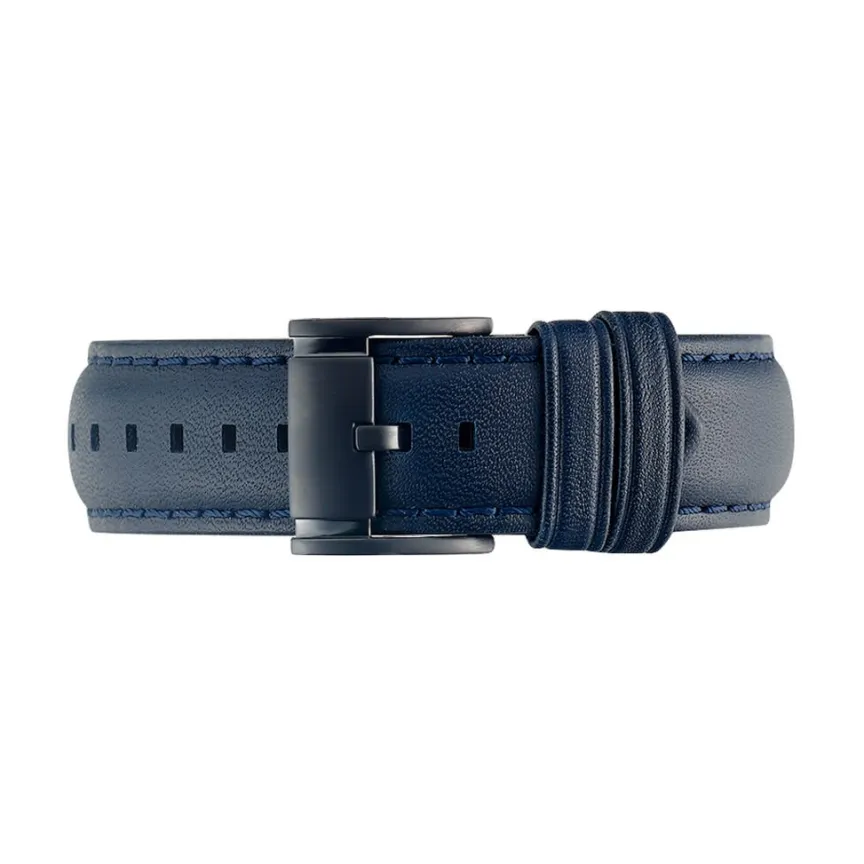 Montre Fossil Grant Acier Noir Ronde Quartz Chronographe 44mm Fond Noir Bracelet Cuir Bleu Fs5061