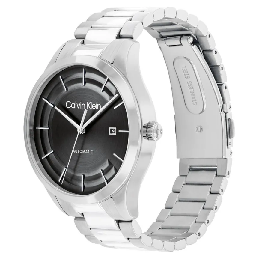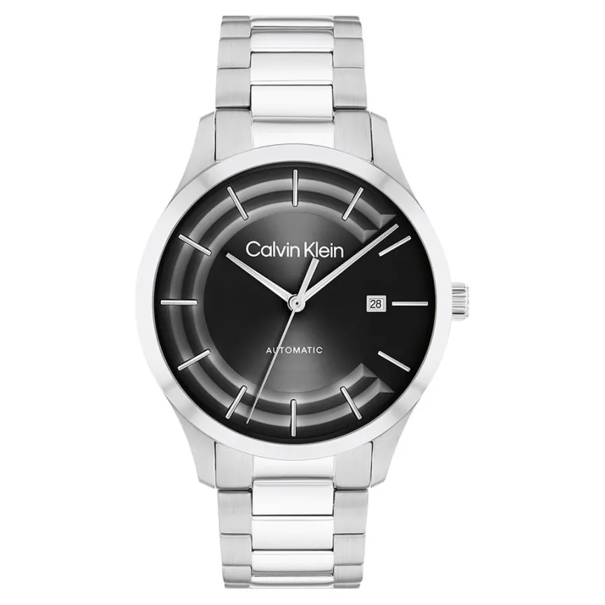 Montre Calvin Klein Iconic Automatic Acier Argenté Ronde Automatique 40mm Fond Noir Bracelet Acier Argenté 25300021