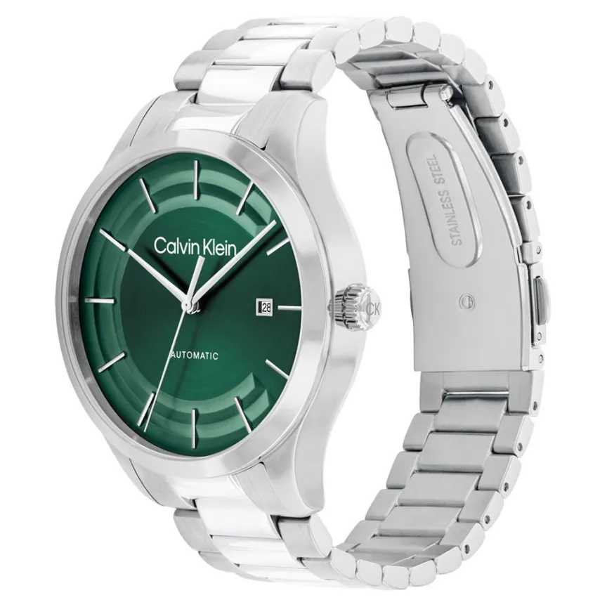 Montre Calvin Klein Iconic Automatic Acier Argenté Ronde Automatique 40mm Fond Vert Bracelet Acier Argenté 25300022