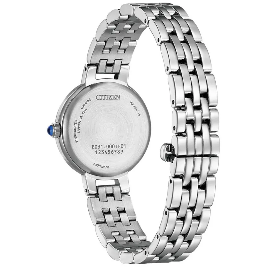 Montre Citizen L Round Collection Acier Inoxydable Argenté Quartz Solaire Ronde 28Mm Fond Blanc Bracelet Acier Inoxydable Argenté Em0990-81A