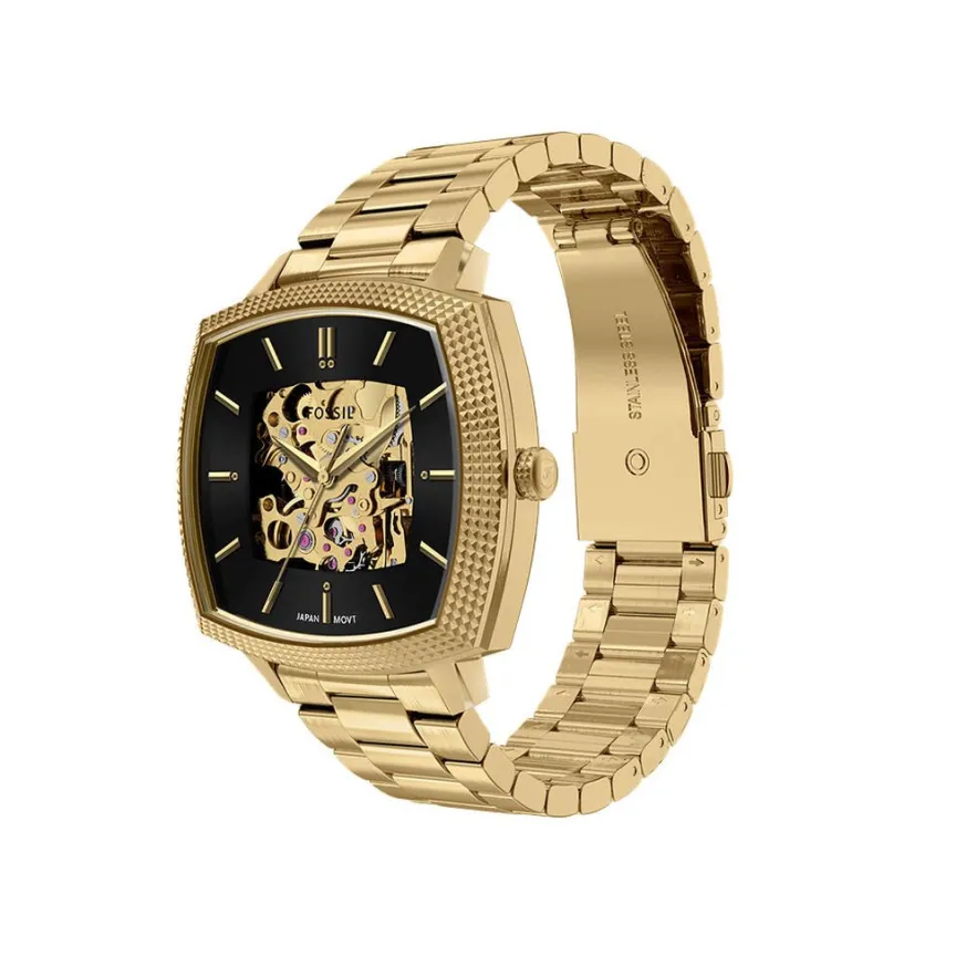 Montre Fossil Edition Limitee Nick Jonas Machine Luxe Acier Inoxydable Doré Automatique Carre 40Mm Fond Noir Coeur Ouvert Bracelet Acier Inoxydable Doré Le1218