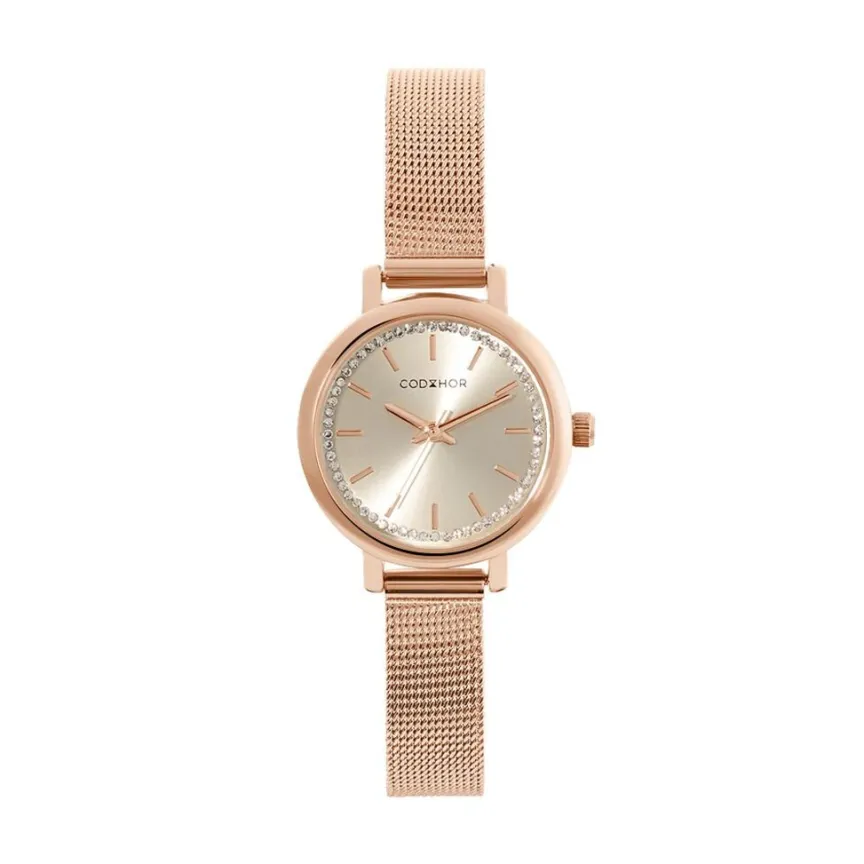 Montre Codhor Nerine Alliage Doré Rose Ronde Quartz 27mm Fond Rose Bracelet Milanais Acier Doré Rose Wbj0085-011
