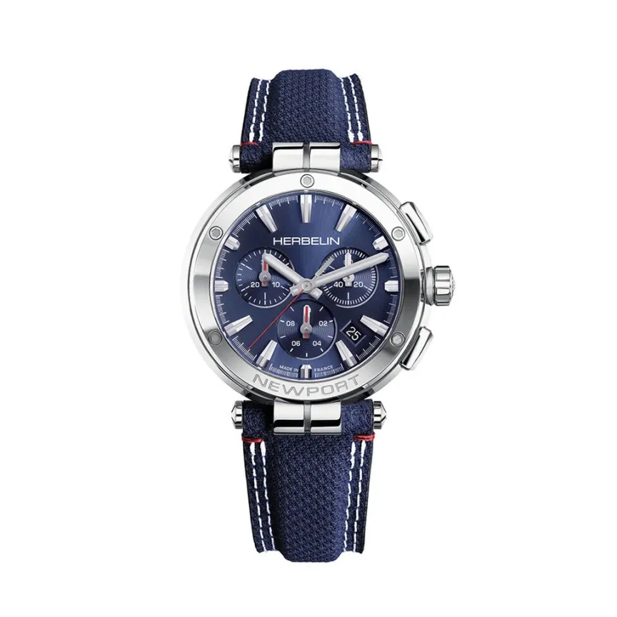 Montre Herbelin Newport Chrono Acier Argente Ronde Quartz Chronographe 40.5mm Fond Bleu Bracelet Tissu Bleu 37658ap15bl