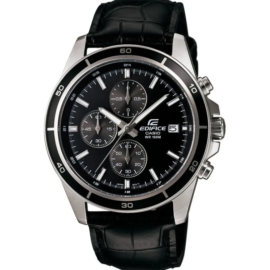 Montre Casio Edifice Acier Blanc Ronde Quartz Chronographe 48.5mm Fond Noir Bracelet Cuir Noir Efr-526l-1avuef