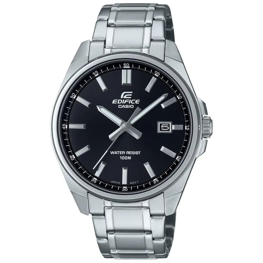 Montre Casio Edifice Acier Argenté Ronde Quartz 42.6mm Fond Noir Bracelet Acier Argenté Efv-150d-1avuef