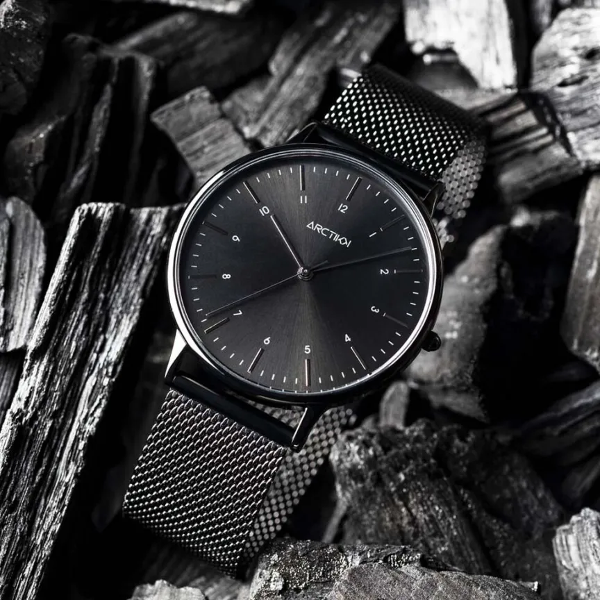 Montre Arctik Nomade Alliage Noir Quartz Ronde 41mm Fond Noir Bracelet Milanais Acier Noir Ar.5592ma/04m