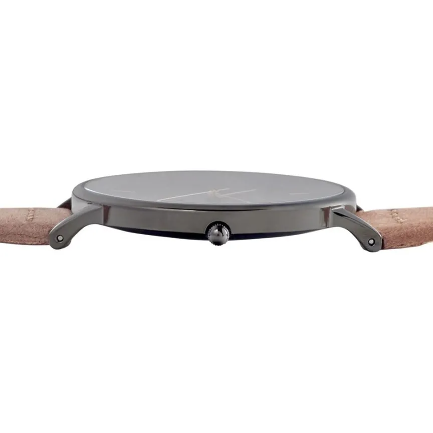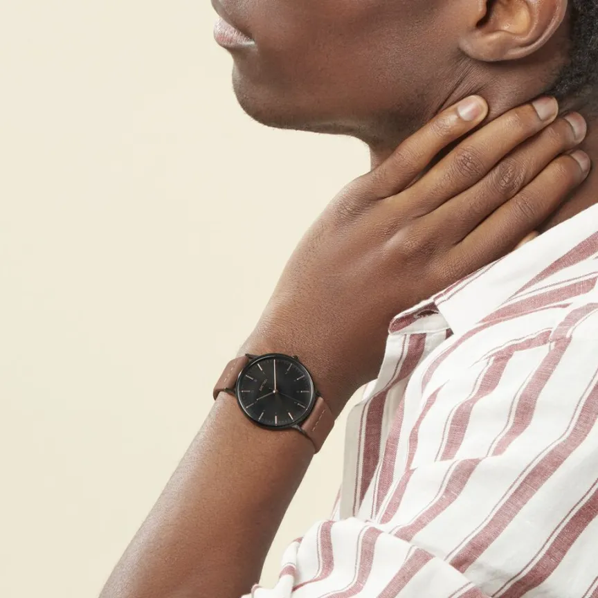 Montre Arctik Nomade Acier Noir Ronde Quartz 41mm Fond Noir Bracelet Cuir Vache Marron Ar.2014m/02