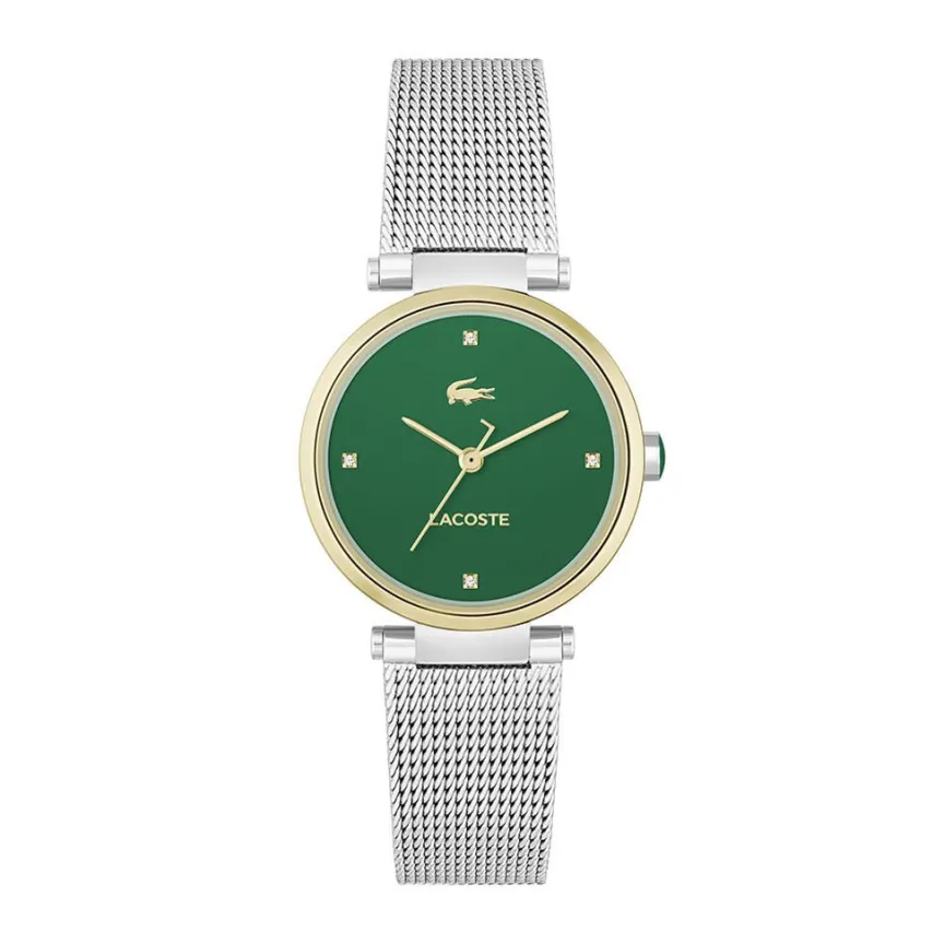 Montre Lacoste Orba Acier Argente Rond Quartz 30mm Fond Vert Bracelet Acier Milanais Argente 2001348